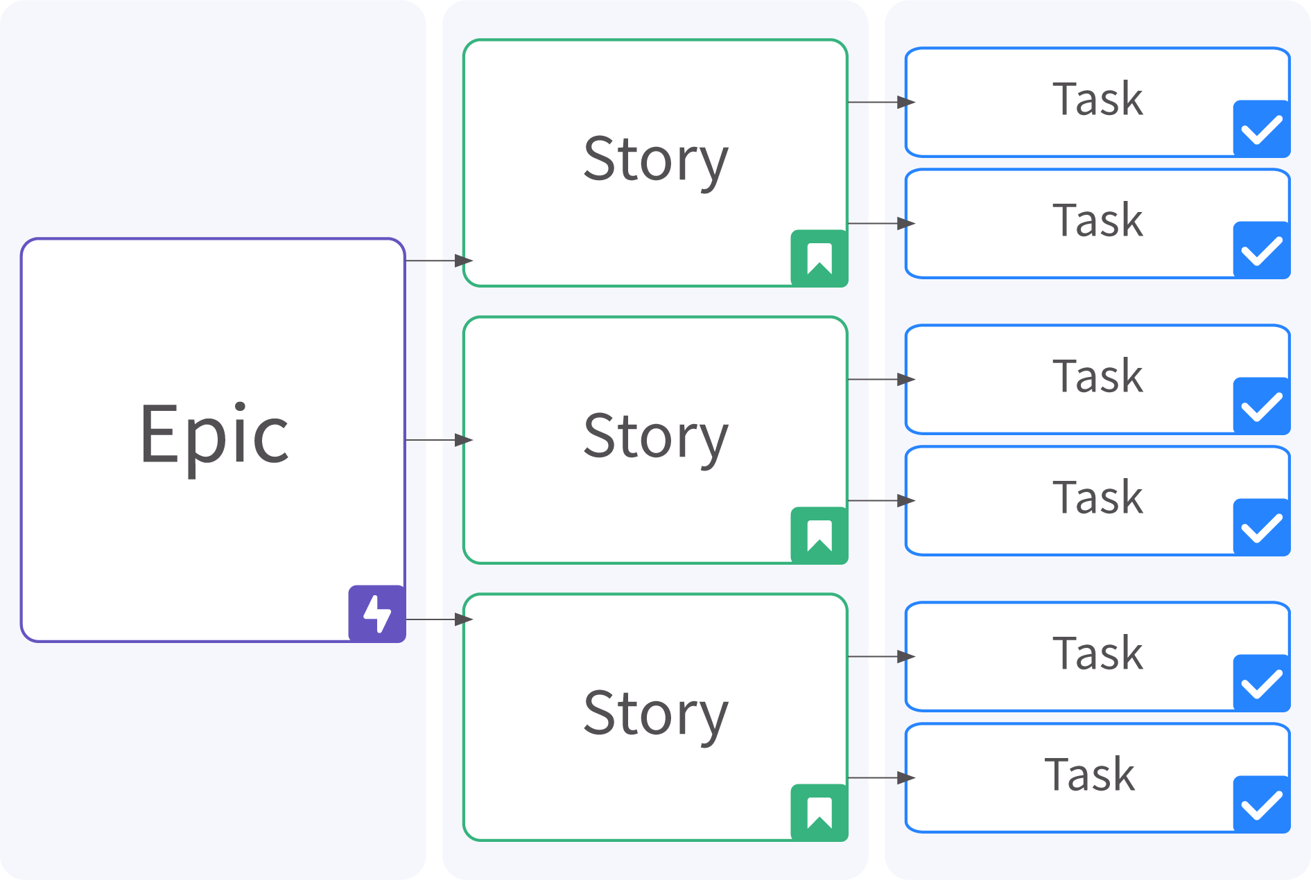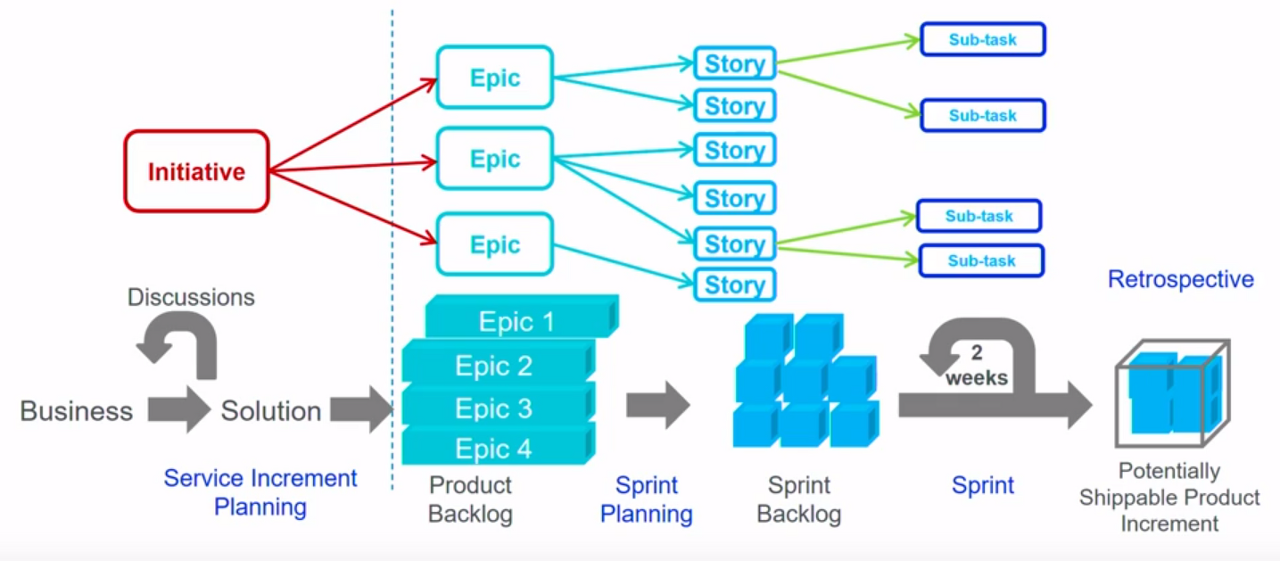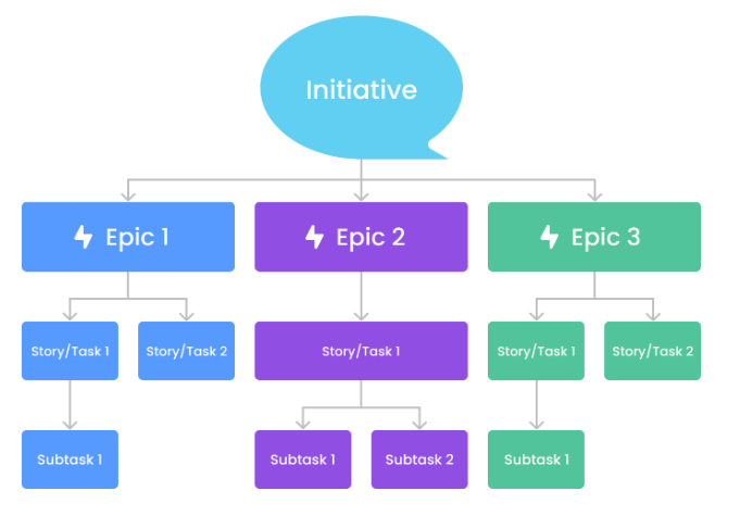 - 에픽은 일반적으로 여러 스토리나 작업으로 나뉘며, 이는 에픽의 세부 목표나 작업을 구체화한다.