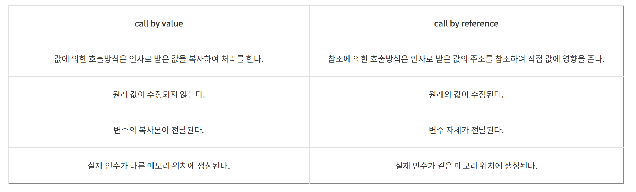 값에 의한 호출은 그 값의 복사본을 만들어서(만들때 원본을 참조) 운영한다는 차이이다.