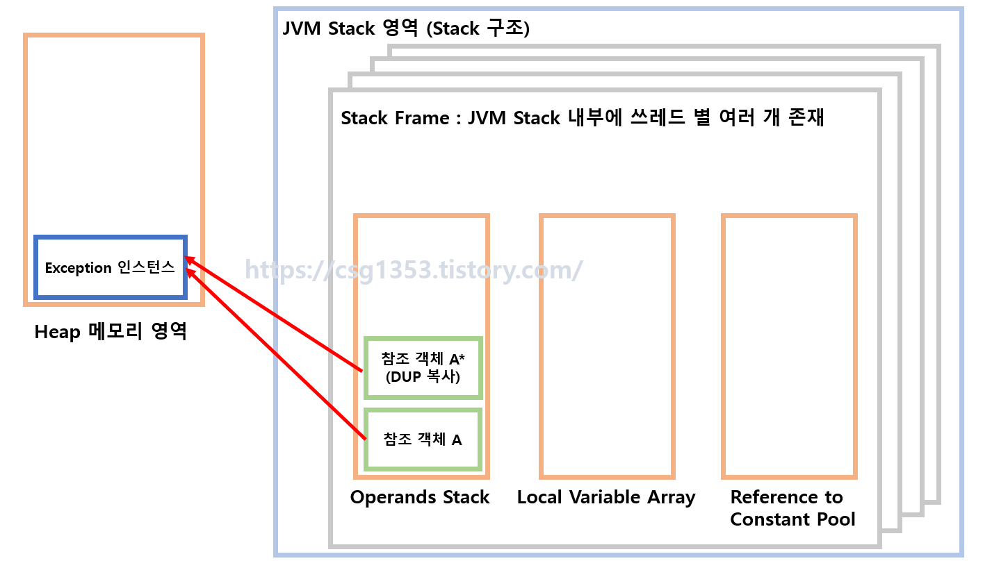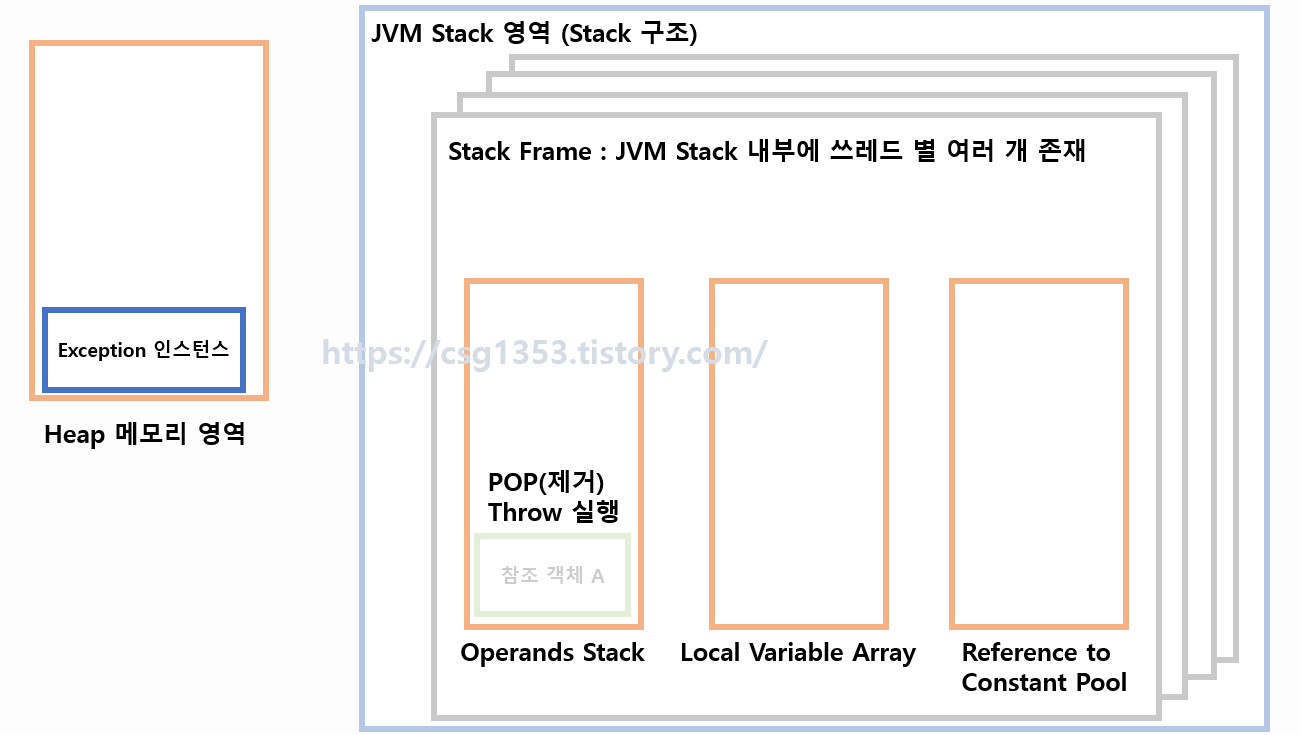 이 상태로 피연산자 스택이 유지된다면, Heap 메모리에서 만들어진 Exception 인스턴스는 GC에 의해서 정리될 것이다. (연관 참조가 없기 때문)