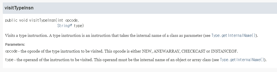 3-2. visitTypeInsn : 타입 관련 지시사항(예: NEW, INSTANCEOF)