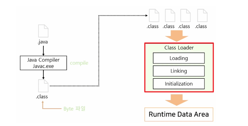 - 클래스로더가 클래스파일(.class)을 읽어와 JVM의 메모리에 클래스를 로드하는 과정이다.