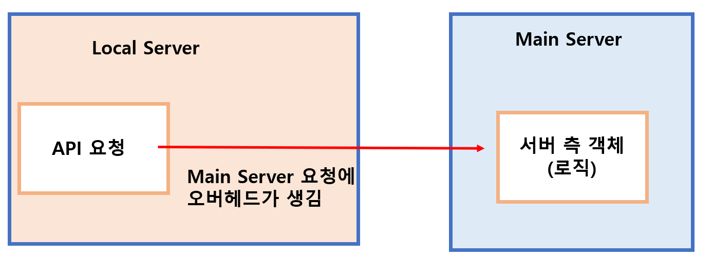 만약 메인 서버의 DB나, 핵심 구조를 방문할 필요가 없다면, 이러한 로직의 프록시 객체를 Local Server에 생성하고, 이를 통해 로직을 작용한다면 오버헤드 문제를 방지할 수 있을 것이다.