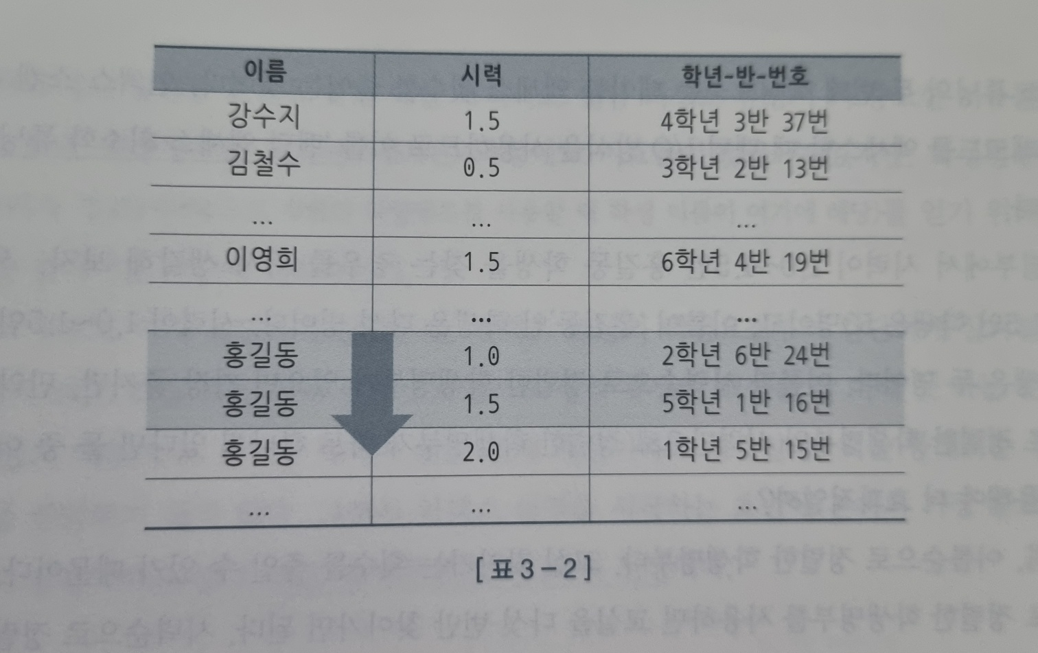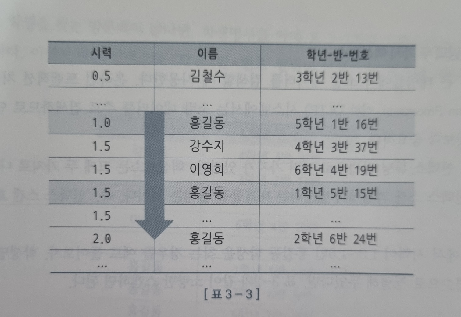 당연히 이름 순으로(물론 시력이 중복도가 높기에 기본적으로 예시가 조금 애매하긴 하지만) 있는 인덱스를 사용하는 것이 더 높은 효율을 가진다.