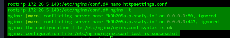 이후 nginx -t를 통해 테스트를 해보자.
